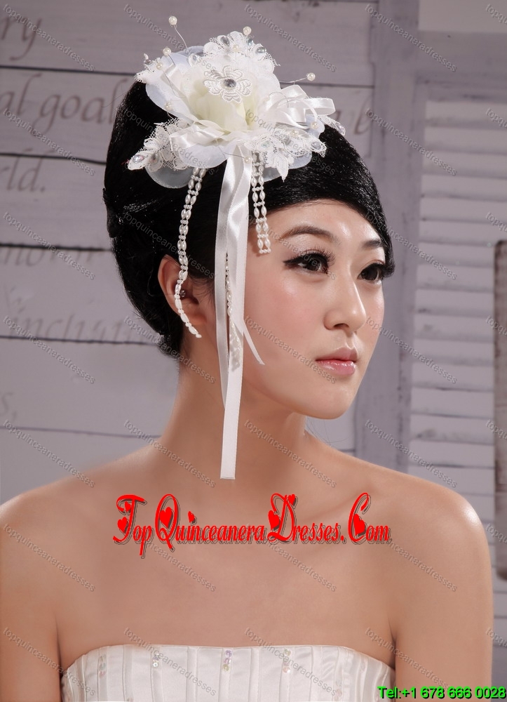 2013 Headpieces Girl White Pearl Flower Bud Silk Hair Hoop
