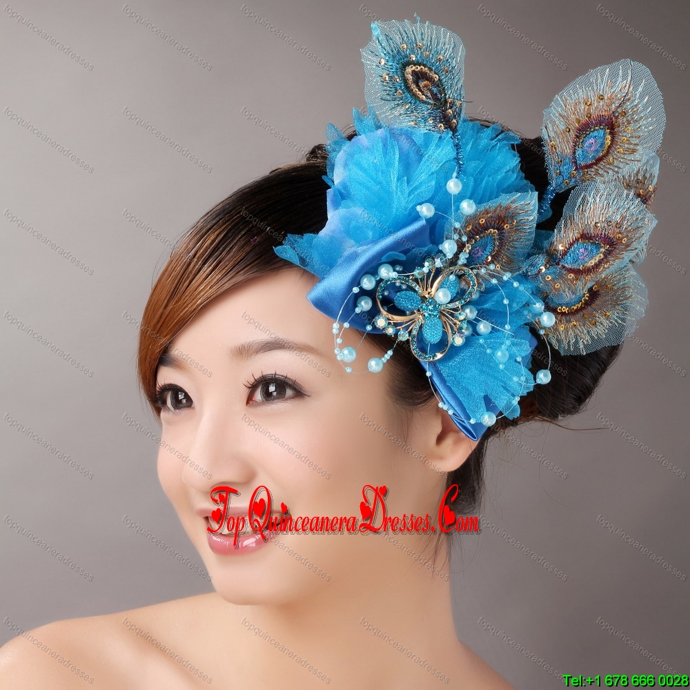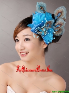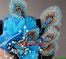 2013 Peacock Blue Feathers Headpieces Beading For Party