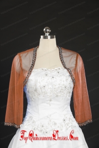 2014 Beautiful Beading Long Sleeves Wraps in Coral Red