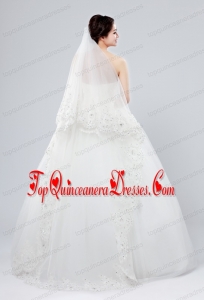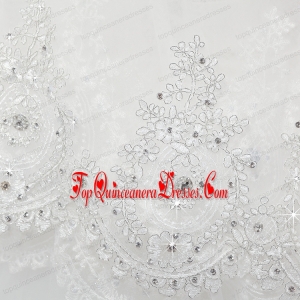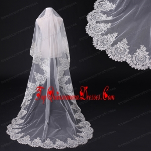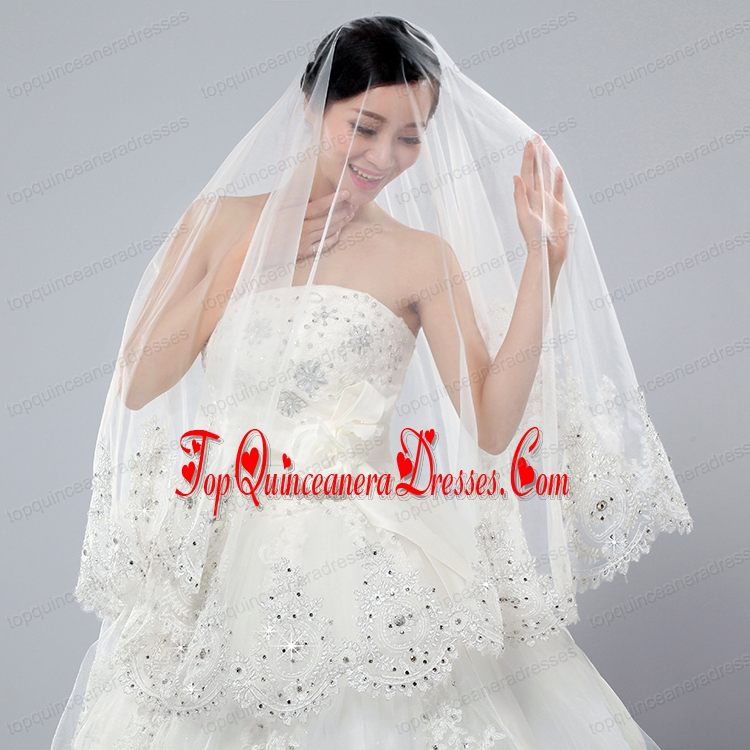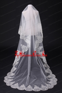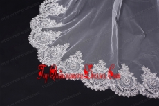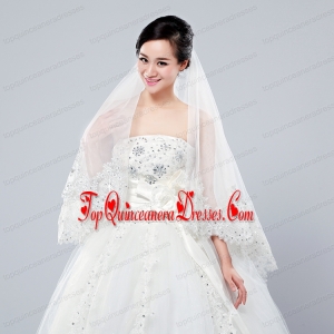 2014 Cheap Two-Tier White Fingertip Veil with Lace Edge