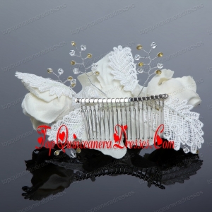 2014 Cute Lace Rhinestone Pearl White Fascinators