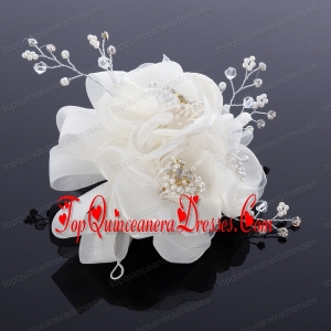 2014 Cute Pearl Net Yarn Chiffon Hair Flowers