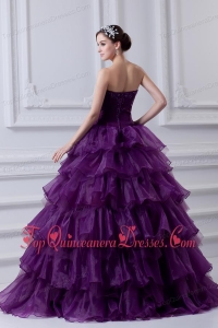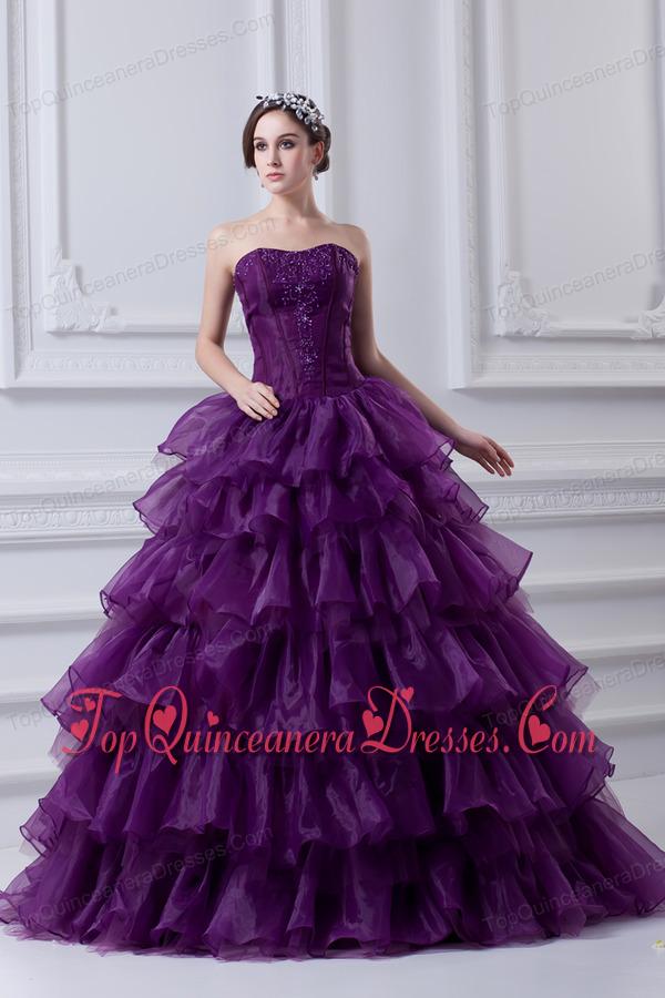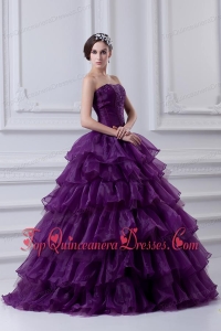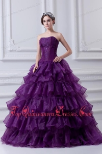 2014 Eggplant Purple Strapless Ball Gown Beading and Embroidery Quinceanera Dress