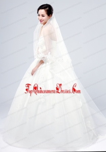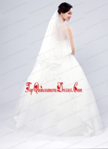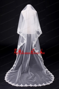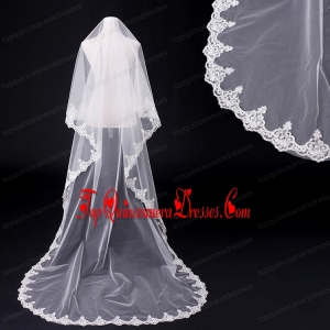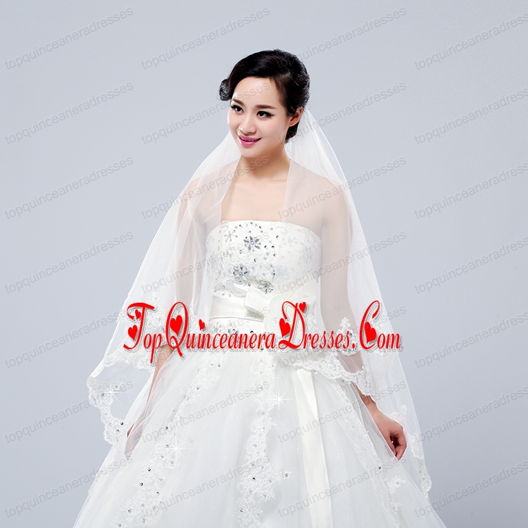 2014 Fingertip Veil Two-Tier Lace Appliques Edge
