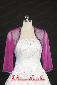2014 Hot Pink Long Sleeves Wraps with Beading