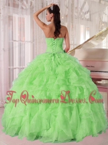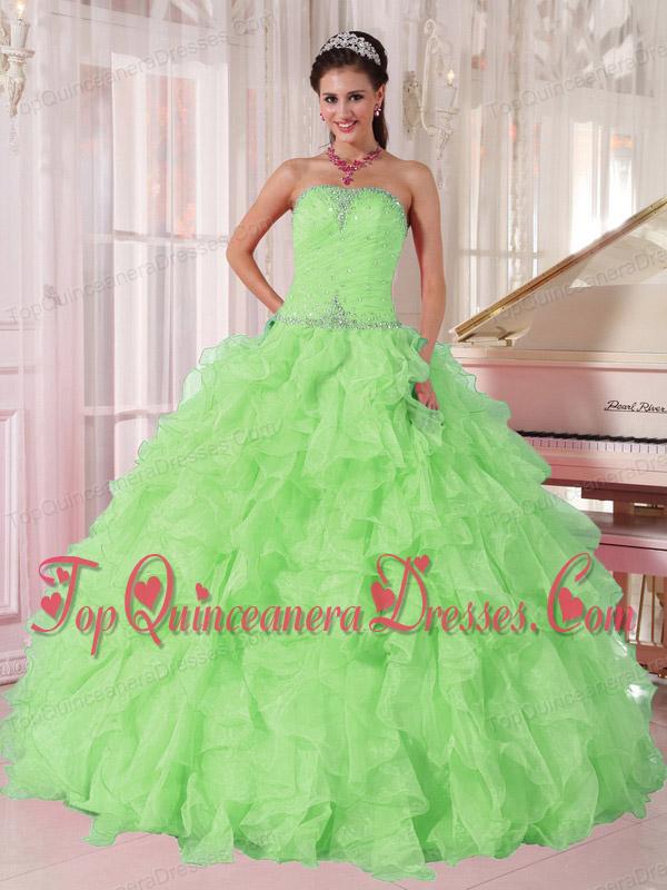 2014 New Spring Green Strapless Ruffles and Beading Puffy Sweet 16 Gowns for Girl