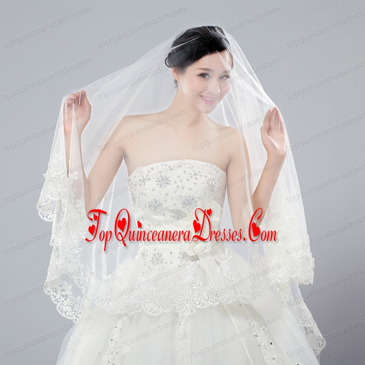 2014 One-Tier Tulle Wedding Veils with Scalloped Edge