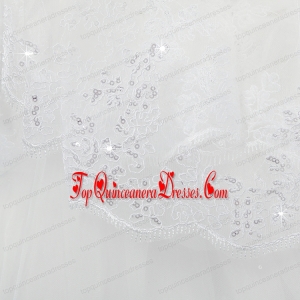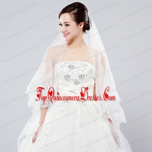 2014 Simple One-Tier Bridal Veils with Lace Appliques Edge