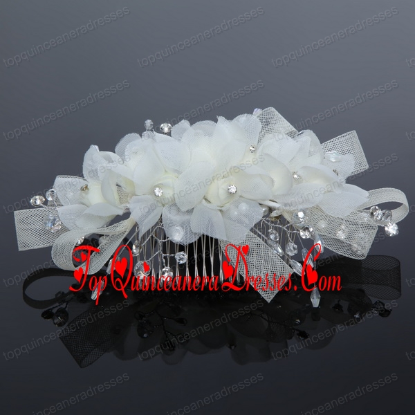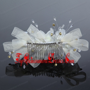 2014 Simple White Tulle Imitation Pearls Hair Combs