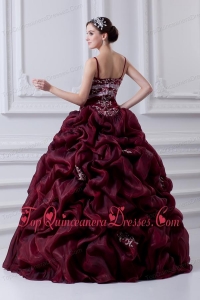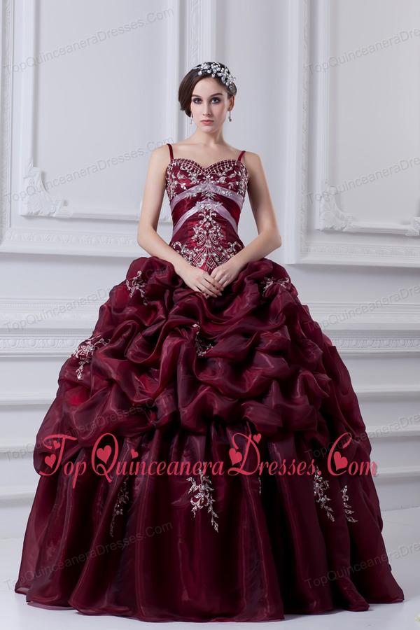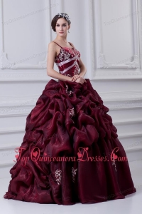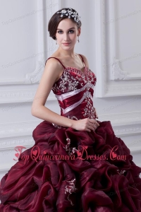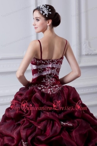 2014 Spaghetti Straps Organza Beading and Appliques Burgundy Quinceanera Dress