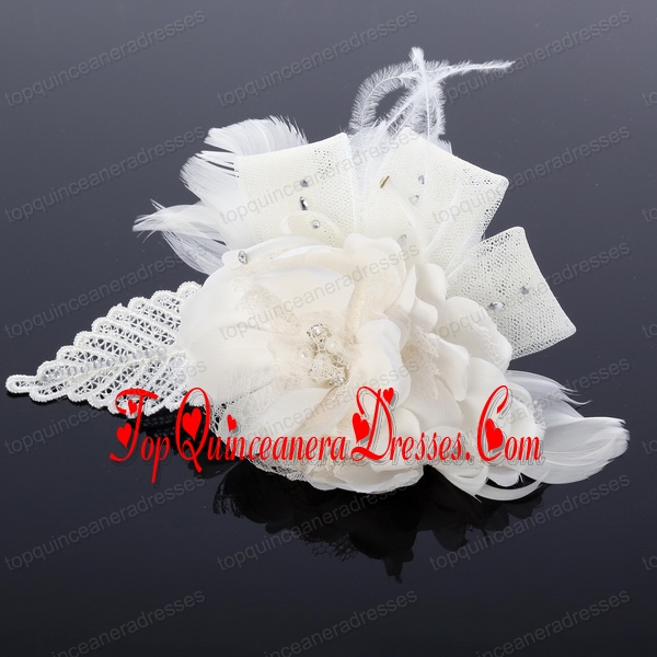 2014 Spring White Tulle Fascinators with Imitation Pearls