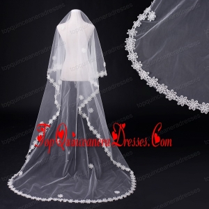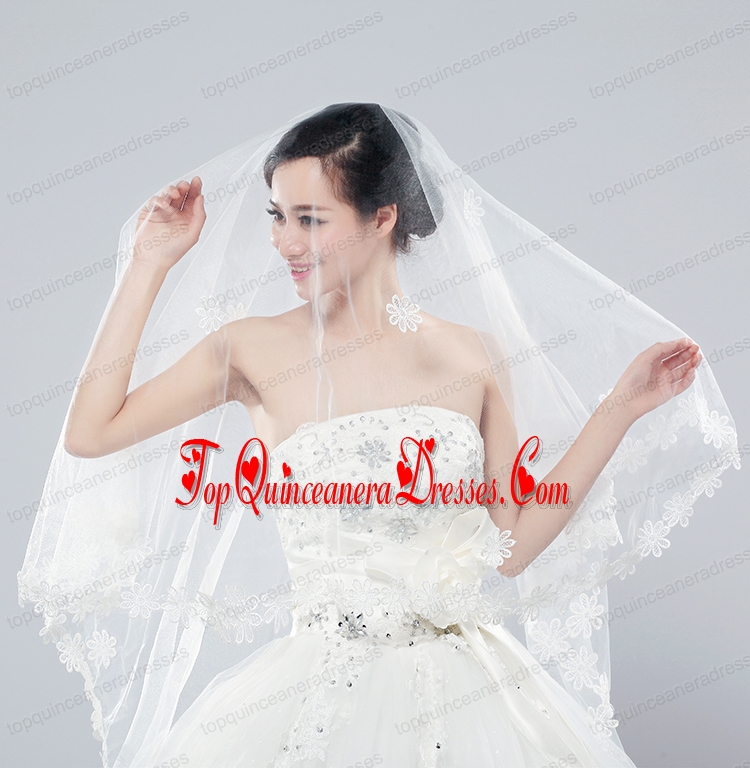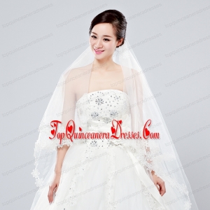 2014 Two-Tier Tulle Elbow Veils with Lace Edge