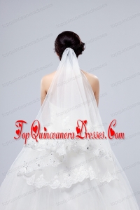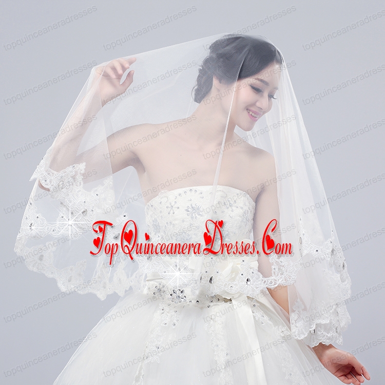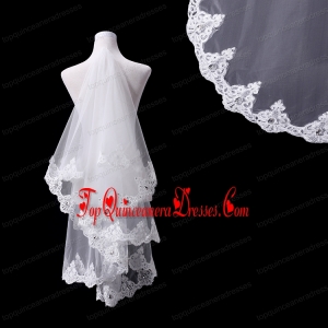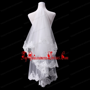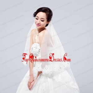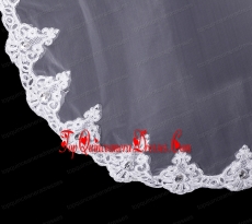 2014 Two-Tier Tulle Lace Appliques Edge Bridal Veils