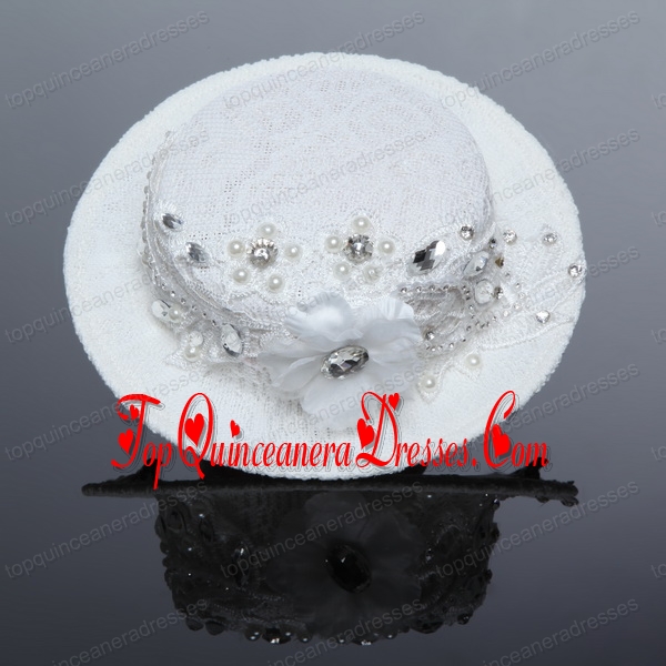 2014 Unique White Hat Hair Ornament with Imitation Pearls