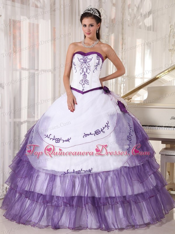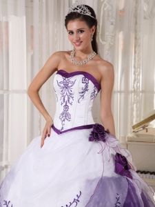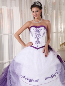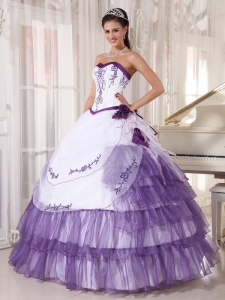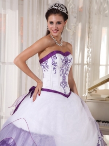 cute sweet 16 quince dress, 2014 White Applique Purple Neckline Quinceanera Dress
