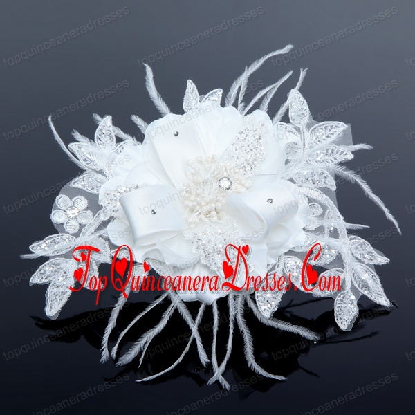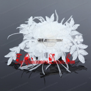 2014 White Pearl Lace and Feather Wedding Hair Flowers
