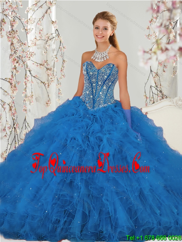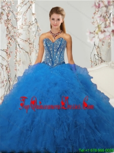 2015 Affordable Beading and Ruffles Aqua Blue Puffy Sweet 16 Gowns