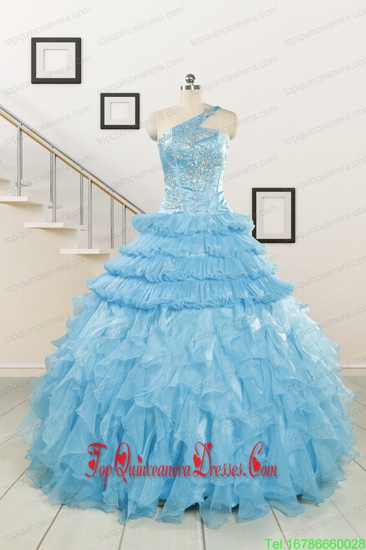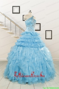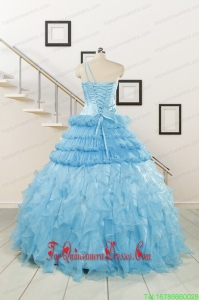 2015 Baby Blue One Shoulder Sweet 15 Dresses with Beading