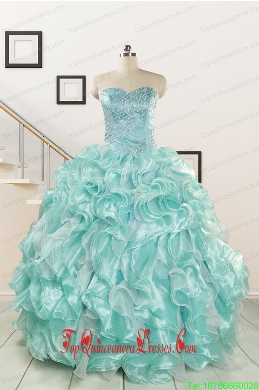 2015 Beautiful Beading Quinceanera Dresses in Apple Green
