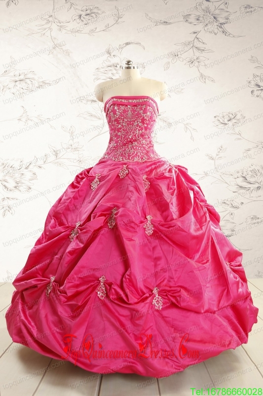2015 Beautiful Strapless Quinceanera Dress with Appliques