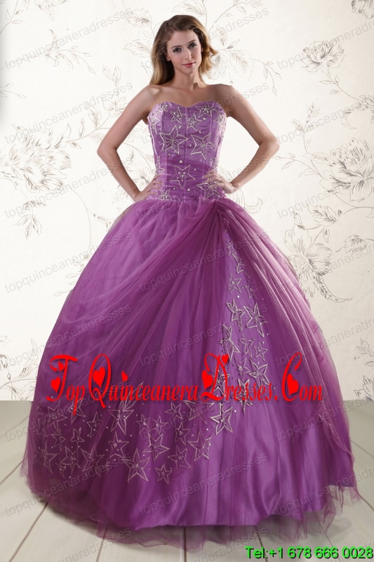 2015 Beautiful Sweetheart Purple Quinceanera Dresses with Embroidery