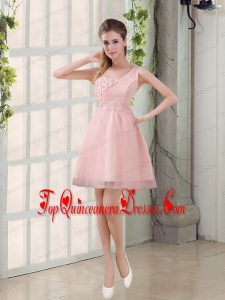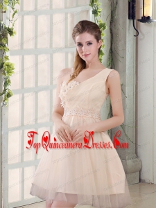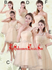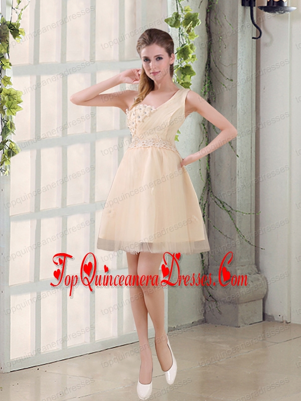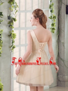 2015 Champagne One Shoulder A Line Appliques Dama Dress