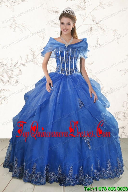 2015 Cheap Appliques Quinceanera Dresses in Royal Blue