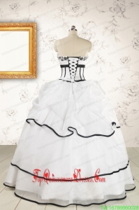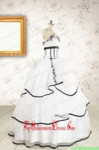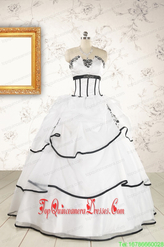 2015 Custom Made Appliques and Ruffles White and Black Quinceanera Dresses
