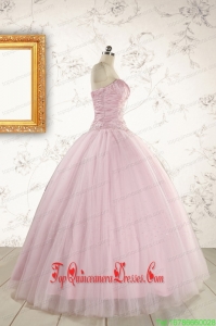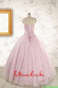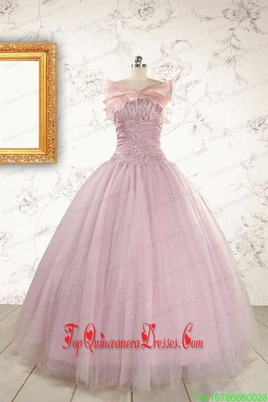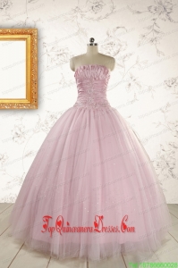 2015 Custom Made Light Pink Appliques Strapless Sweet 16 Dresses with Wrap