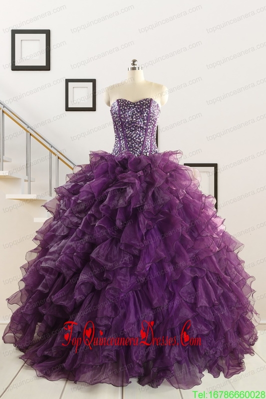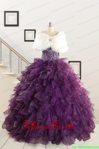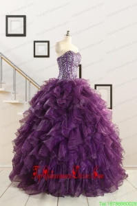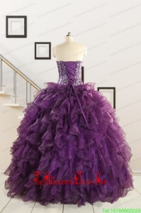 2015 Custom Made Purple Quinceanera Dresses with Beading and Ruffles