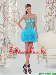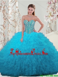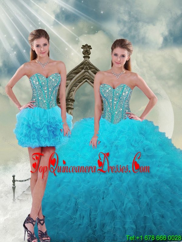 2015 Detachable and Luxurious Spring Luxurious Beading and Ruffles Turquoise Dresses For Quince