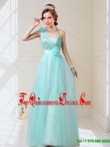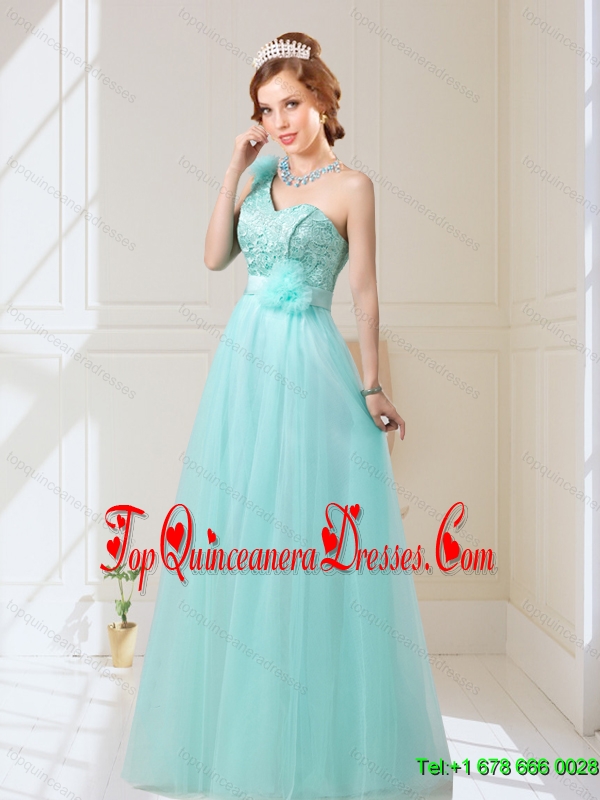 2015 Empire Lace Up Hand Made Flowers Dama Dresses in Mint