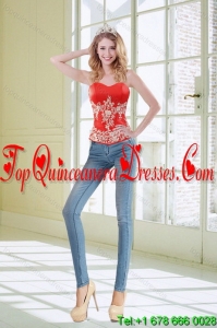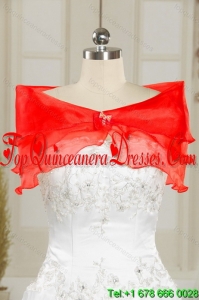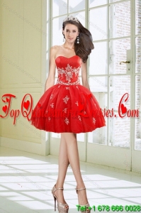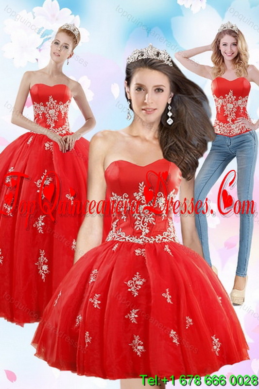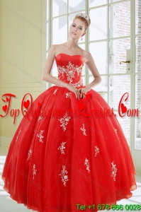 2015 Exquisite Strapless Red Quince Dresses With Appliques