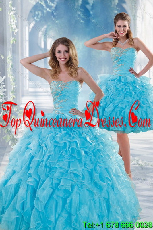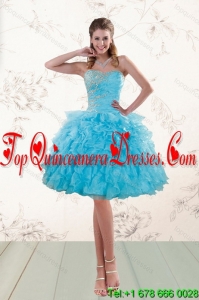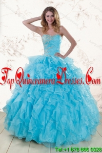 2015 Fashionable Baby Blue Sweet 16 Dresses with Beading and Ruffles