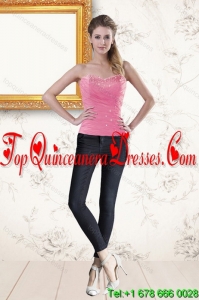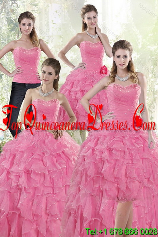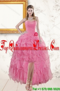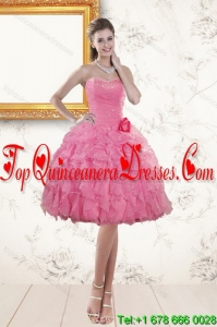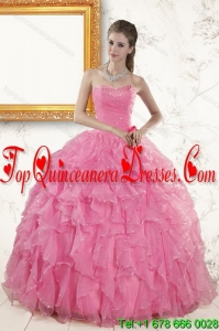 2015 Fashionable Baby Pink Quince Dresses with Beading and Ruffles
