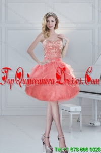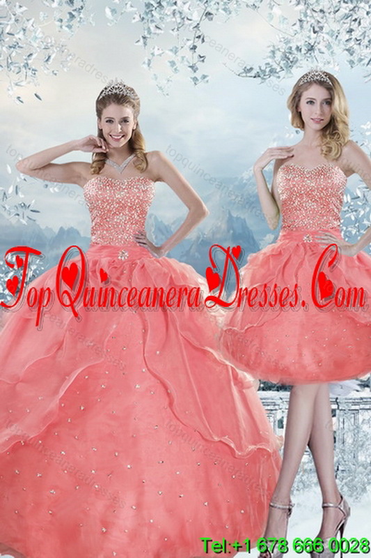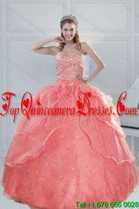 2015 Fashionable Beading Quinceanera Dresses in Watermelon