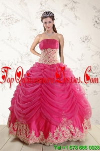 2015 Fashionable Hot Pink Quinceanera Dresses with Beading and Lace