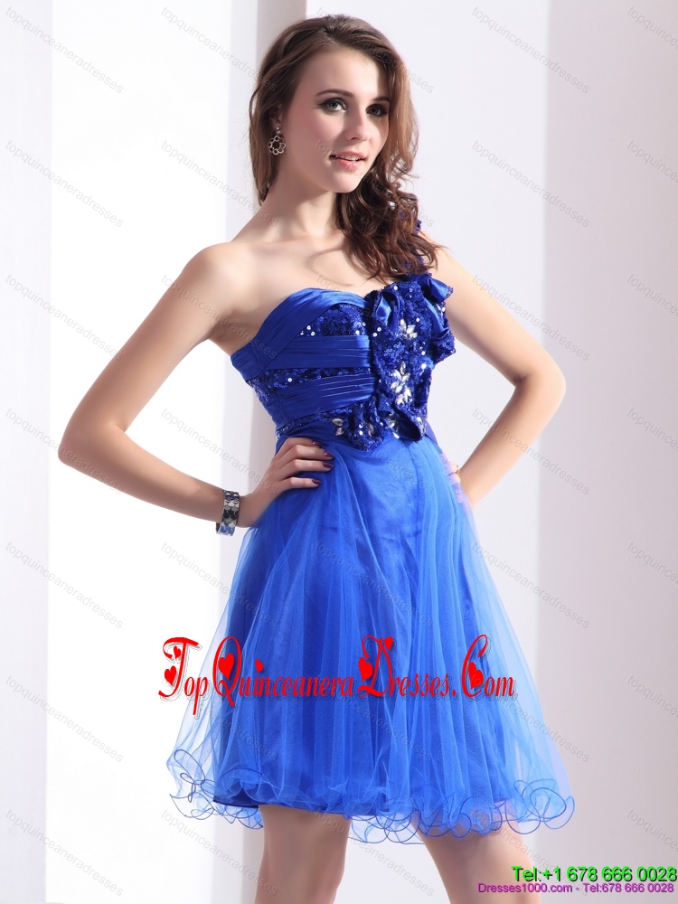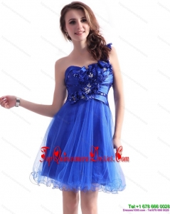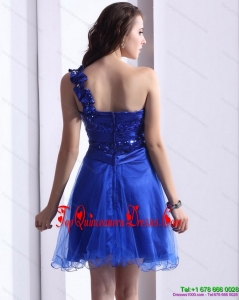 2015 Fashionable One Shoulder Damas Dresses with Beading and Hand Made Flowers
