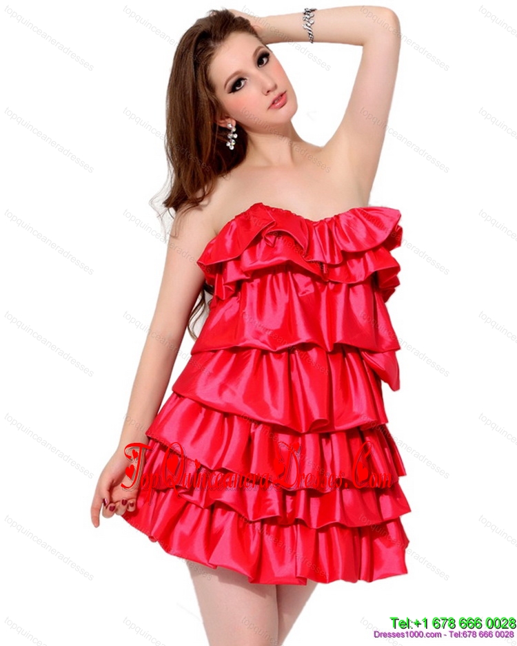 2015 Fashionable Red Mini Length Damas Dresses with Ruffled Layers