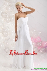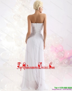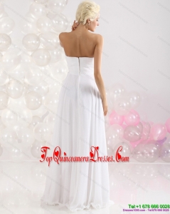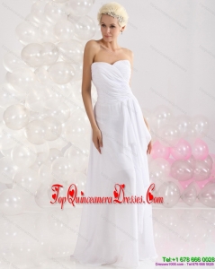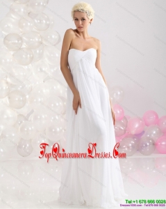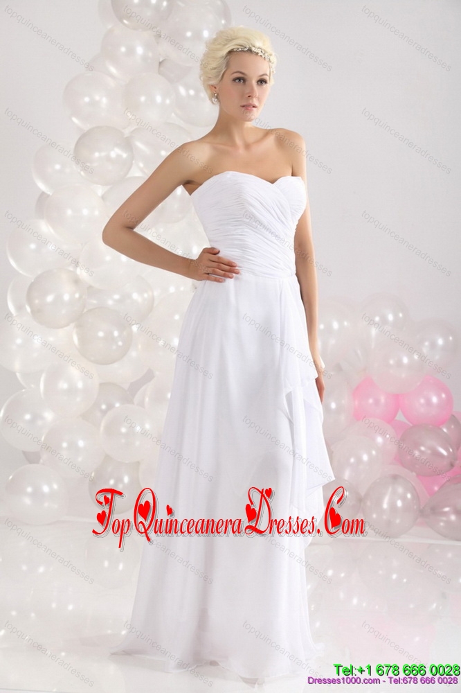 2015 Fashionable Ruching Floor Length Dama Dress in White