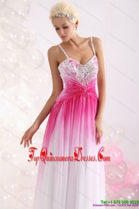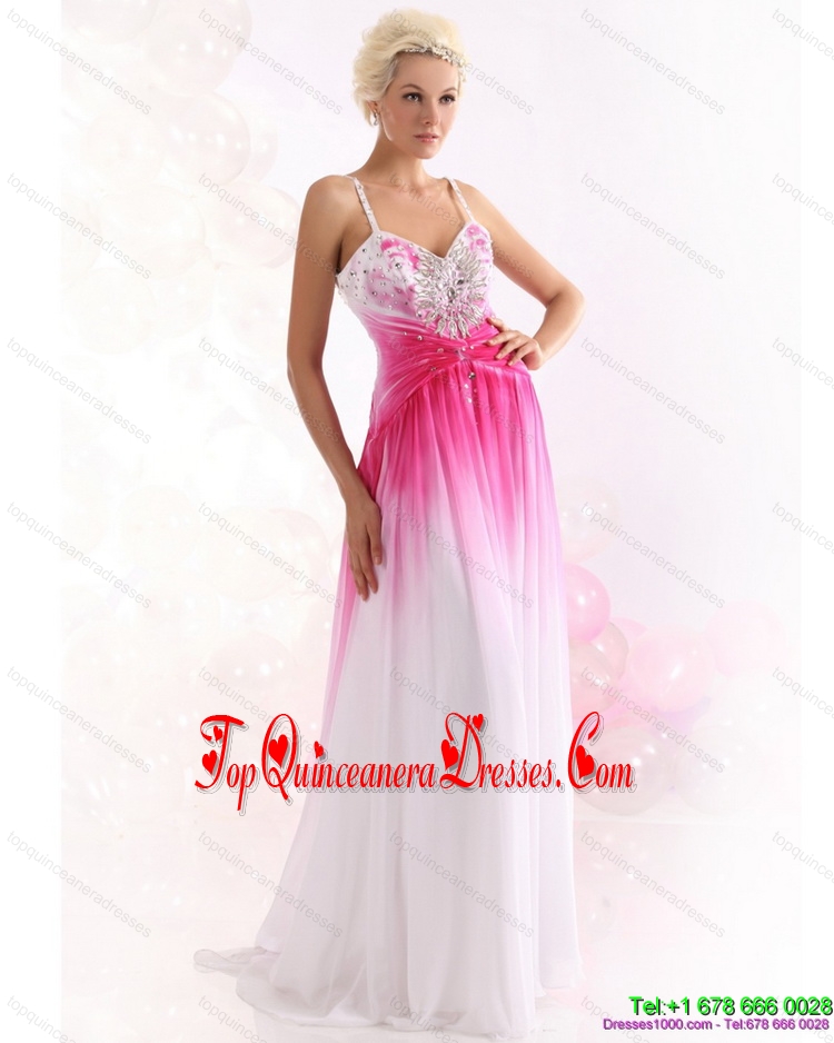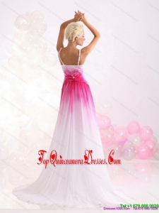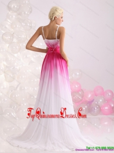 2015 Fashionable Spaghetti Straps Brush Train Dama Dress with Paillettes
