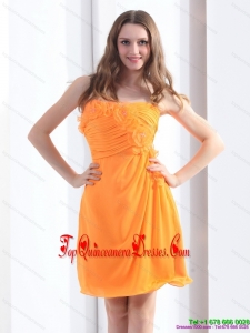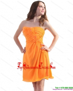 2015 Fashionable Strapless Orange Damas Dress with Hand Made Flowers and Ruching