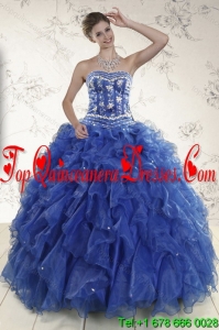 2015 Fashionable Strapless Quinceanera Dresses in Royal Blue