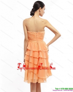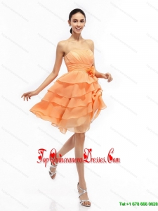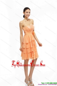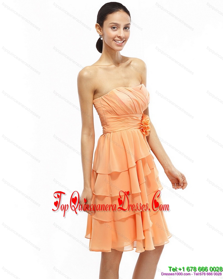 2015 Fashionable Strapless Short Damas Dresses with Ruching and Hand Made Flower