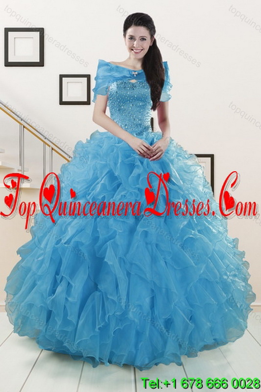 2015 Fashionable Strapless Sweet 15 Dresses with Beading and Ruffles