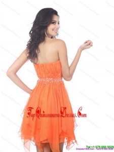 2015 Fashionable Sweetheart Beading and Ruching Damas Dress in Orange