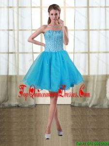 2015 Fashionable Sweetheart High Low Baby Blue Dama Dresses with Beading