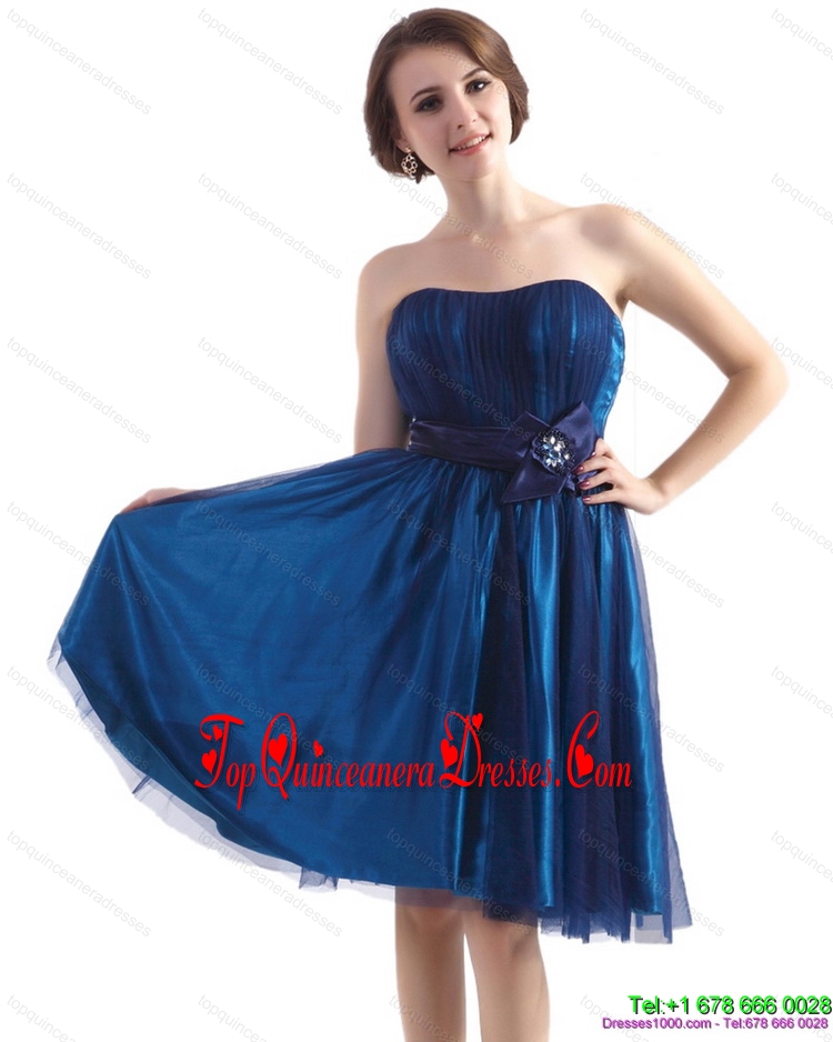 2015 Fashionable Sweetheart Mini Length Dama Dress with Belt and Beading