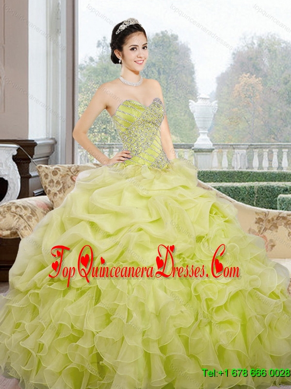 2015 Fashionable Sweetheart Yellow Green Quinceanera Dresses with Ruffles and Pick Ups