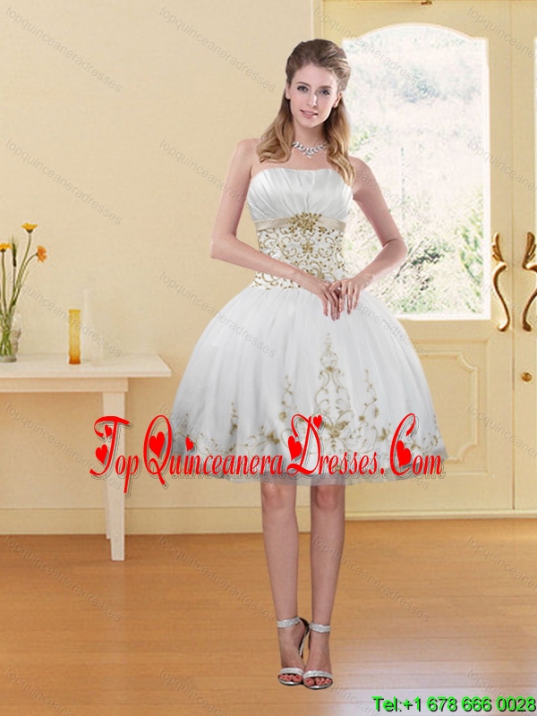 2015 Fashionable White Strapless Quinceanera Dama Dresses with Embroidery